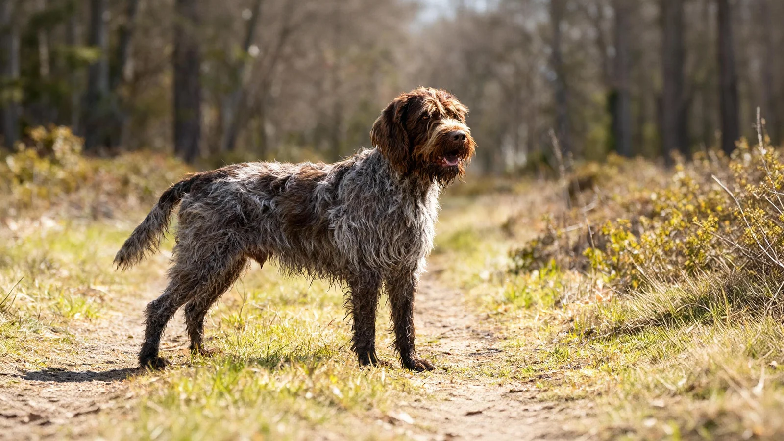 最具代表性的特征是全身覆盖的刚硬针状被毛和浓密底毛,这种“防护外套”可以帮助它们在荆棘丛、泥地和冷水中工作时抵御伤害与低温。成年犬肩高大约在 56–67 cm,体重多在 23–32 kg 左右,雌性个体略轻一些。常见毛色以肝色配杂白、肝色斑点或肝色纯色为主,平均寿命一般在 12–14 年之间。