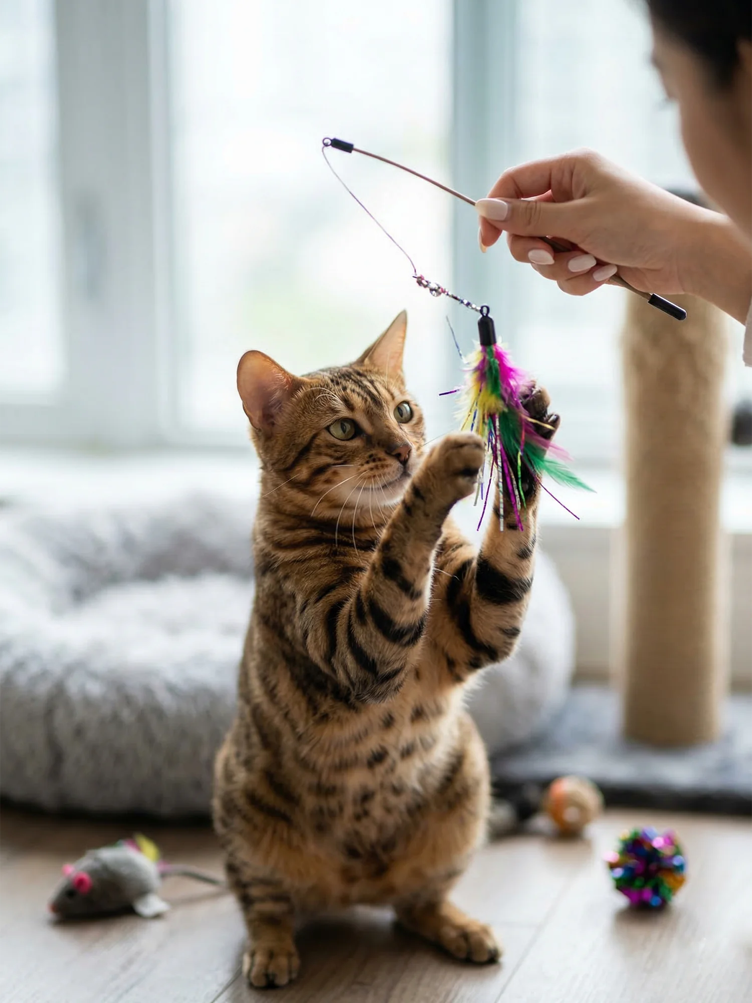 如果只想先买一种,逗猫棒通常最不容易出错。它能模拟猎物移动,最适合建立互动,也能帮助胆小猫在相对安全的距离内慢慢参与游戏。