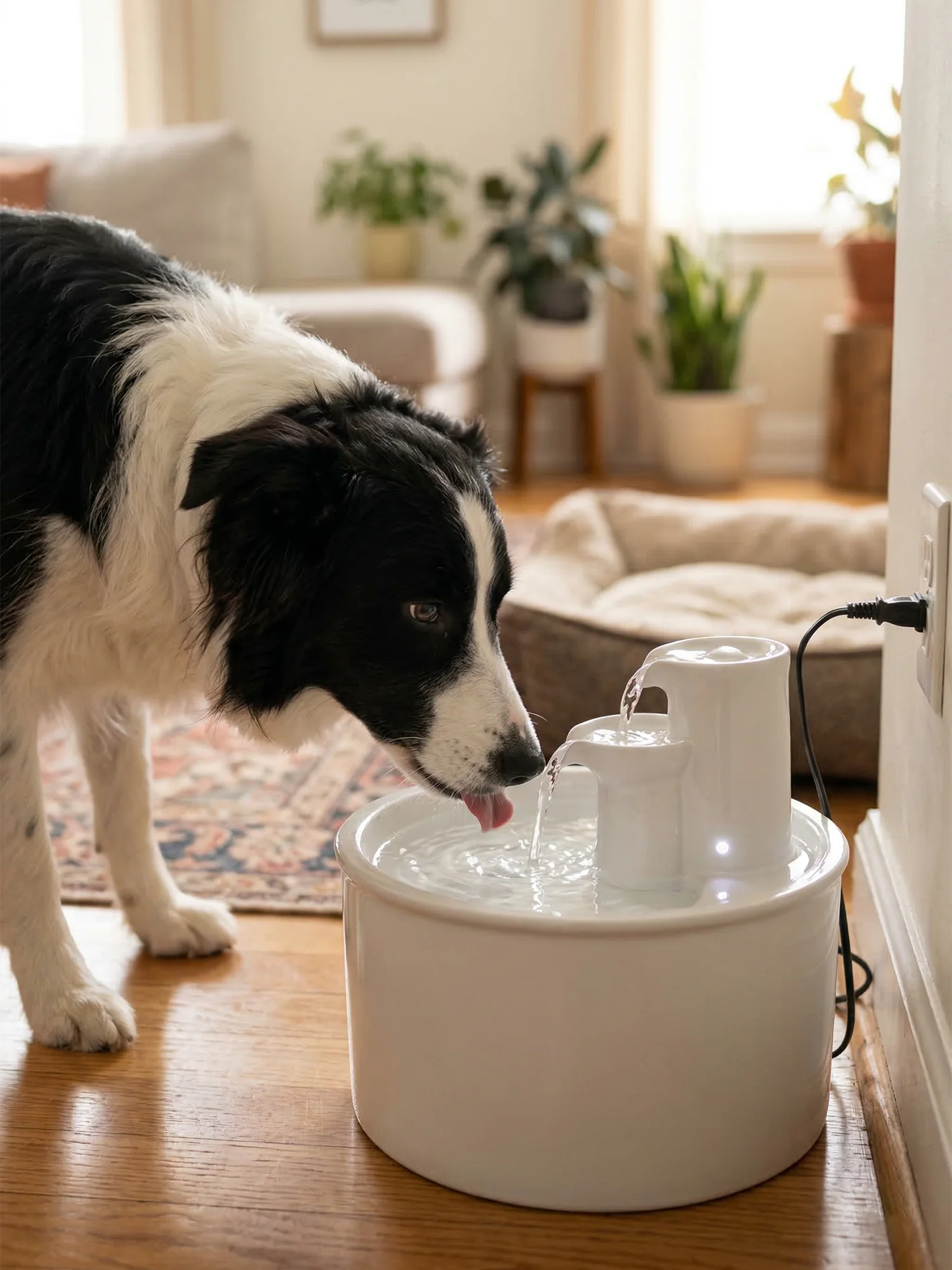 对多宠家庭尤其有用。单个水碗容易被打翻、弄脏或被一只强势宠物占住,饮水机容量更大,补水频率通常也能稍微降低。