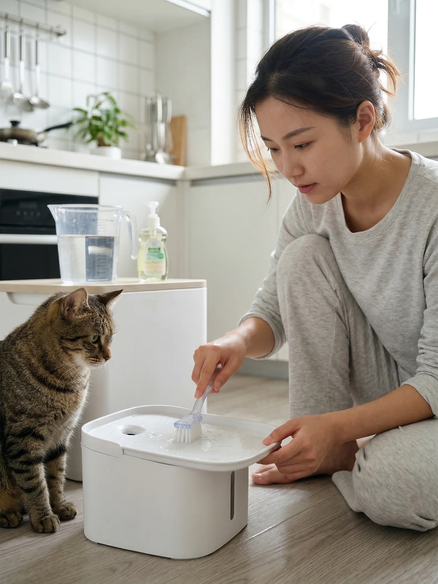 天气热时,水温更容易升高,细小残渣和黏滑感也会来得更快。多猫家庭喝水频率高、毛发更多,维护节奏自然不能和单猫冬天一样。