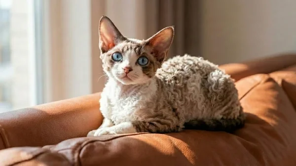 德文卷毛猫(Devon Rex)体型中等、被毛微卷贴身,性格黏人好奇、活泼爱玩。掉毛相对较少但皮肤与耳道清洁需求更高;建议规律互动与环境丰富化,并关注心肌病、口腔与皮肤/耳螨等健康风险。