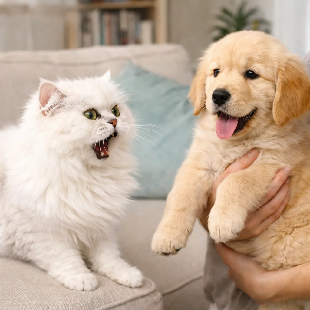当新成员进入家庭时,原住民的哈气、低吼甚至主动攻击,本质上是对领地受侵犯的应激反应。