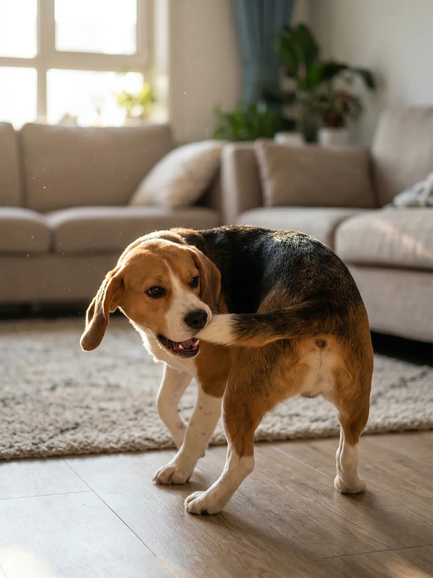 先记录追尾发生的时间和持续时长,再增加嗅闻散步与互动;若频率明显升高并伴随舔咬尾根或难以打断,就尽快处理。
