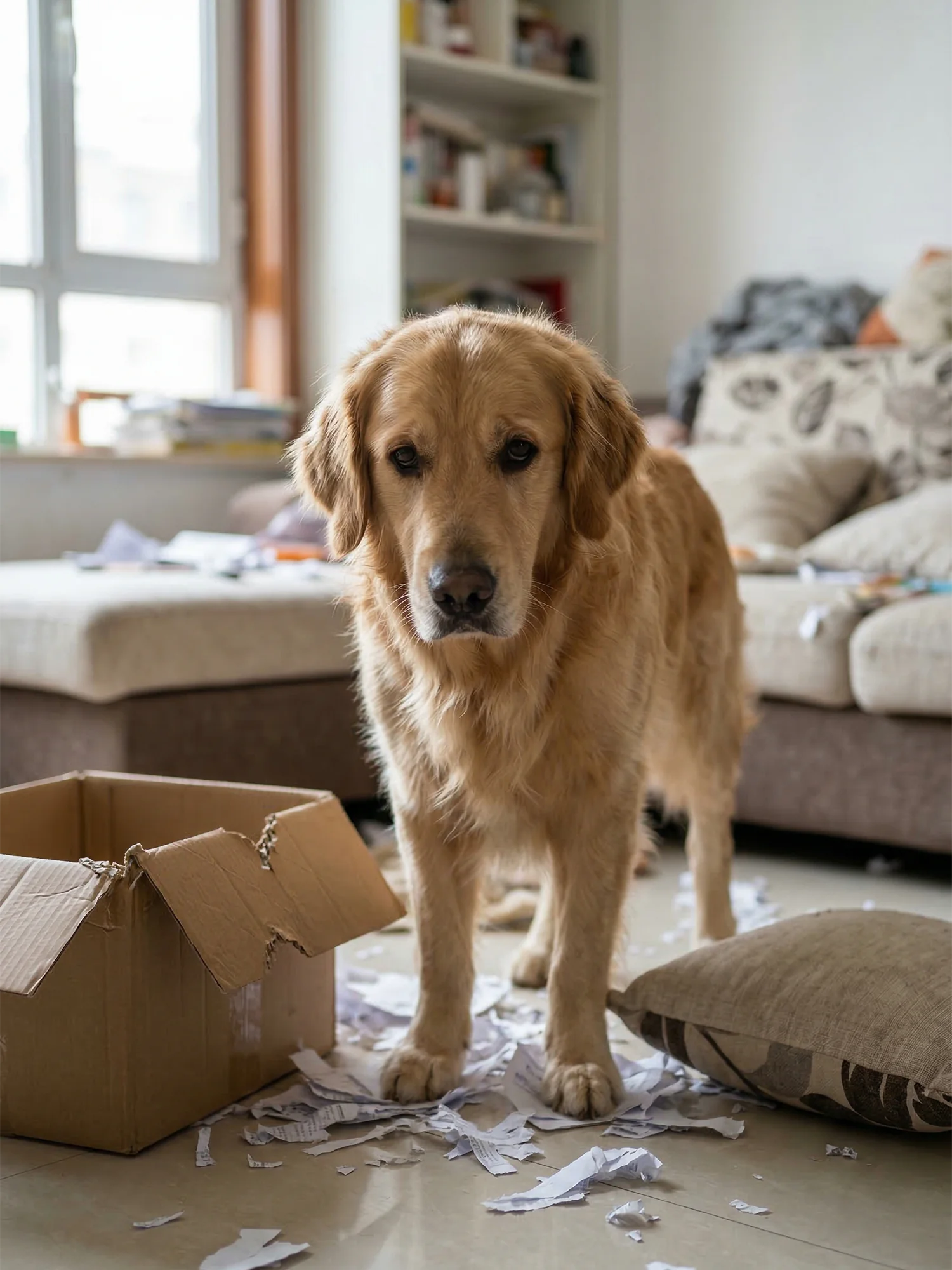 有些狗平时很安静,主人一出门就开始撕纸、扒门、咬家具边,这类行为往往不只是无聊,更像在高压状态下找发泄口。