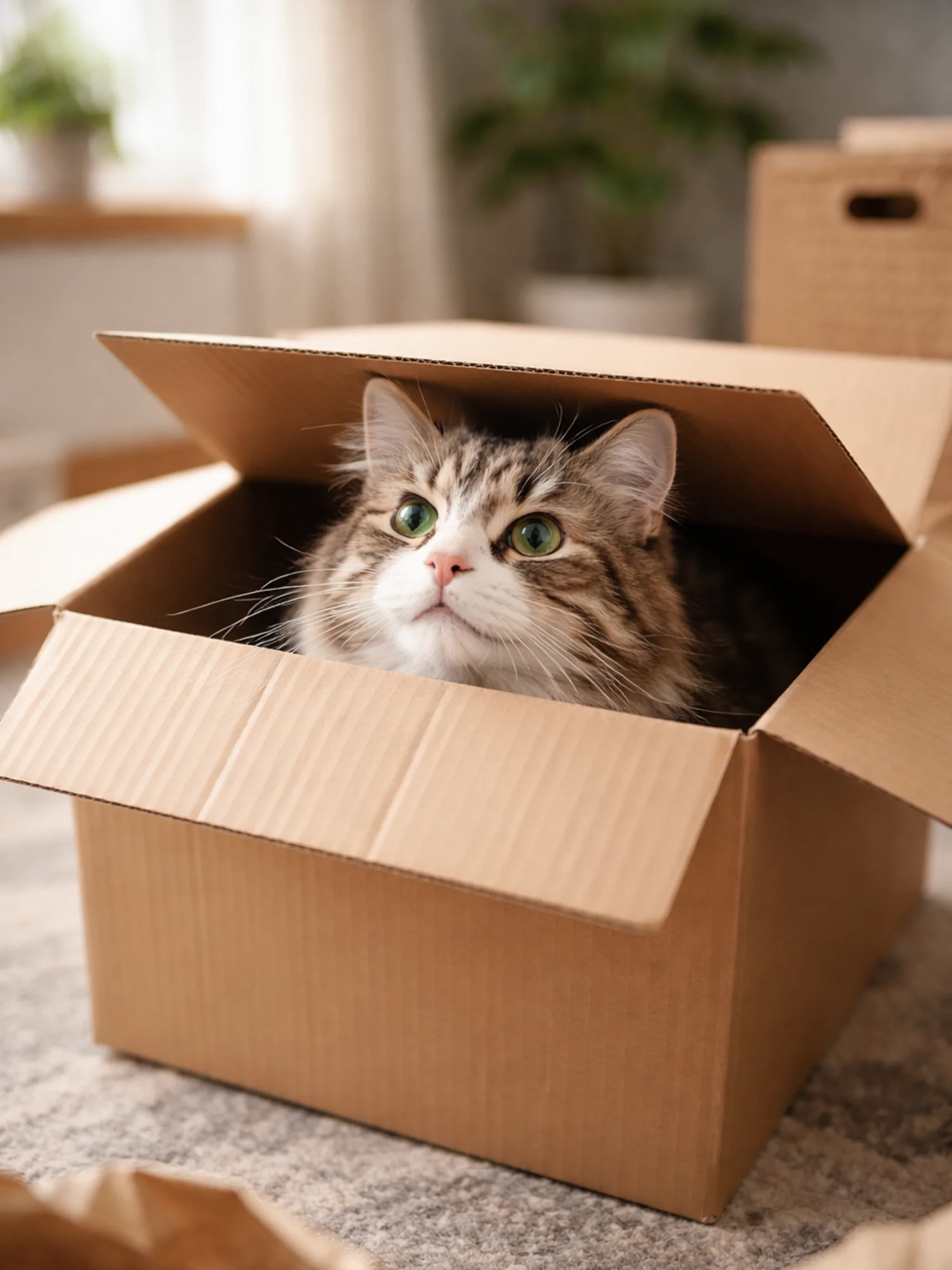 当环境中有变化,比如新成员加入、搬动家具或声音增加,猫更容易寻找可以“躲避”的空间。纸箱因为简单、易进入,往往成为首选。