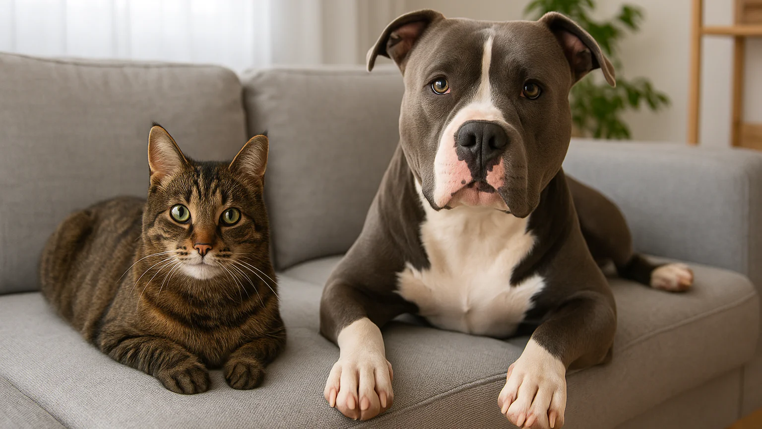 故事的开头,其实很普通。一只名叫 Trey 的 American Bully 跟主人一起搬进新家,一条看起来肌肉发达、头大脸凶的狗,按很多人的刻板印象,大概会被贴上“有点吓人”“不好惹”的标签。结果没过多久,院子里突然多出了一只常常来串门的流浪猫。