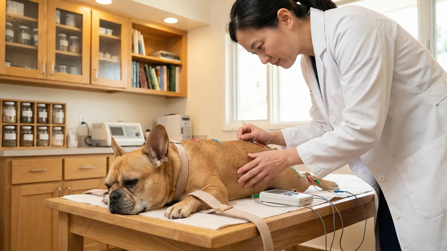 这两年,如果你走进一些大城市的宠物医院,会发现诊室里的画面悄悄变了:除了听诊器、B 超、输液架,桌上还多了银色的针灸针、艾条、小砂锅,药柜里多了一排排写着中药名的罐子。被主人抱上诊台的狗狗猫咪,有的是做完手术来康复的,有的是长期关节疼、走路一瘸一拐的老年犬,还有的是消化不好、经常软便的猫,在医生建议下尝试针灸、艾灸或者中药调理。